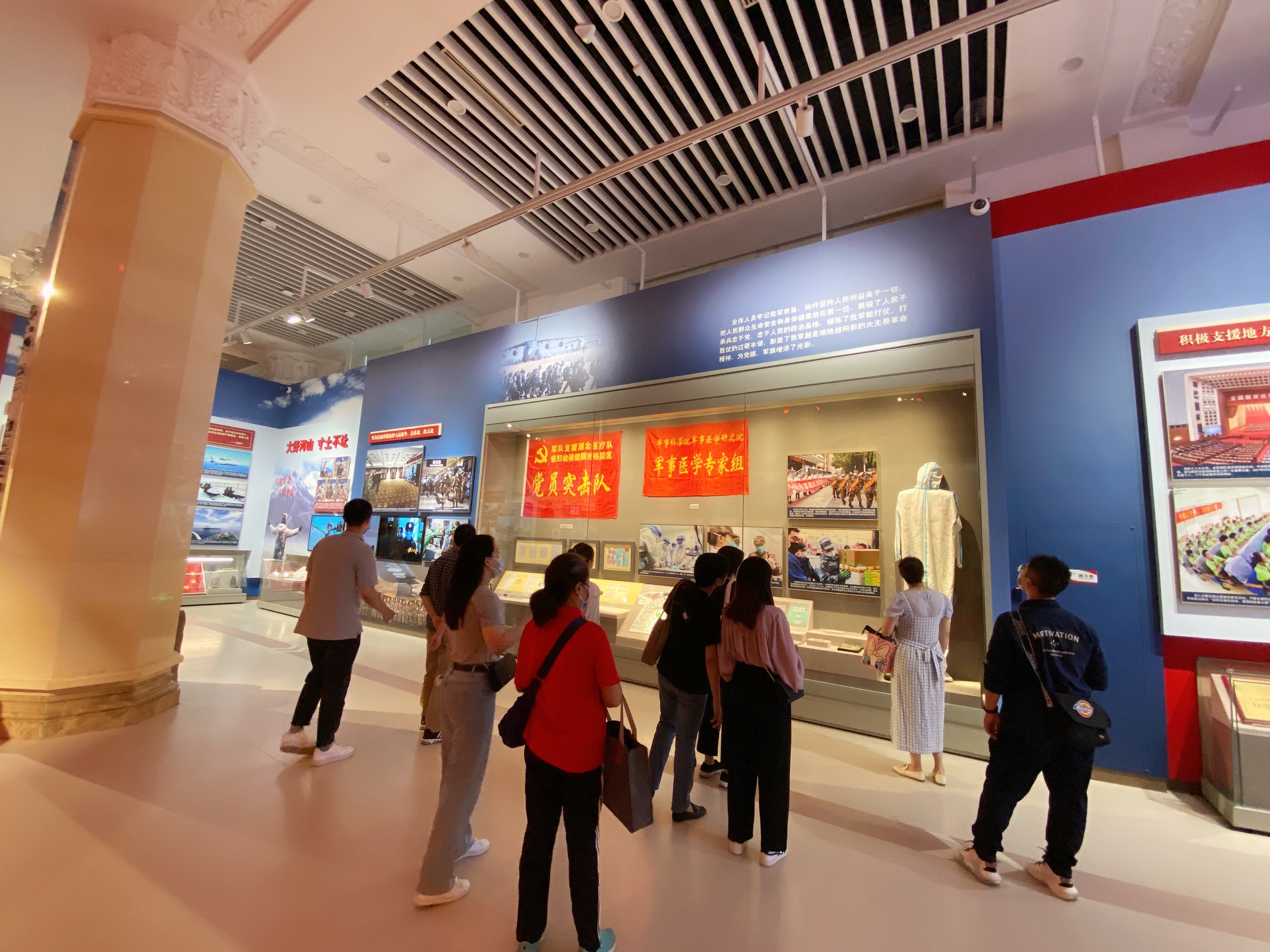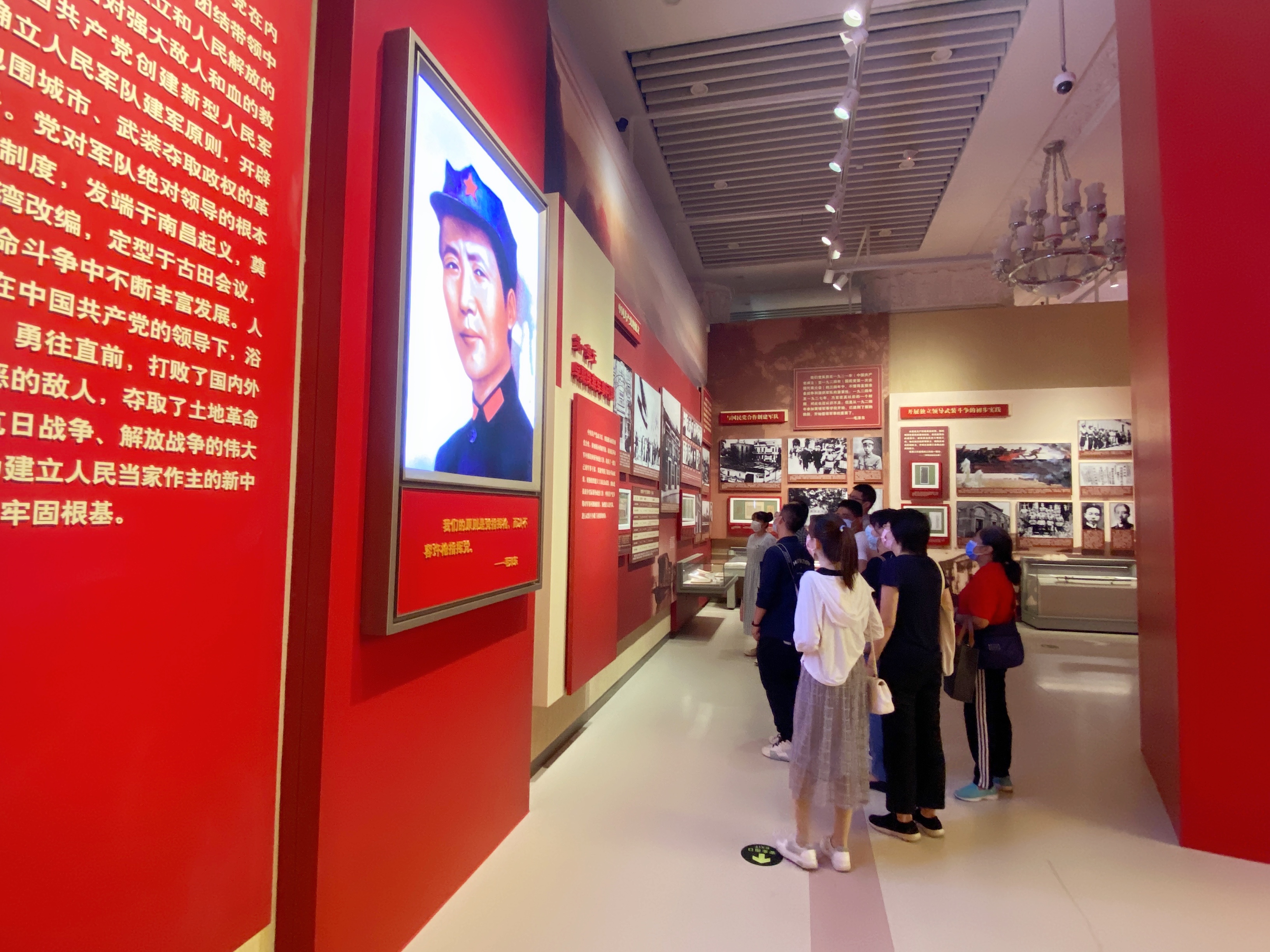 服务改革开放大局”、“确立党在新时代的强军目标 履行新时代使命任务”4个历史时期组成。共展出文物实物1580余件、照片800余张和大量历史文献、图表制字、视频短片等,重点打造“三湾改编”、“古田会议”、“决胜千里党指挥”、“重整行装再出发”、“在战位向党和人民报告”等景观,形象再现经典历史瞬间,展览强烈的代入感使大家沉浸在其中,一件件革命实物彰显了红色精神,红色基因的代代相传。一个个红色故事,展示出人民军队不畏牺牲,勇往直前,永远听党话、跟党走的赤胆忠诚。