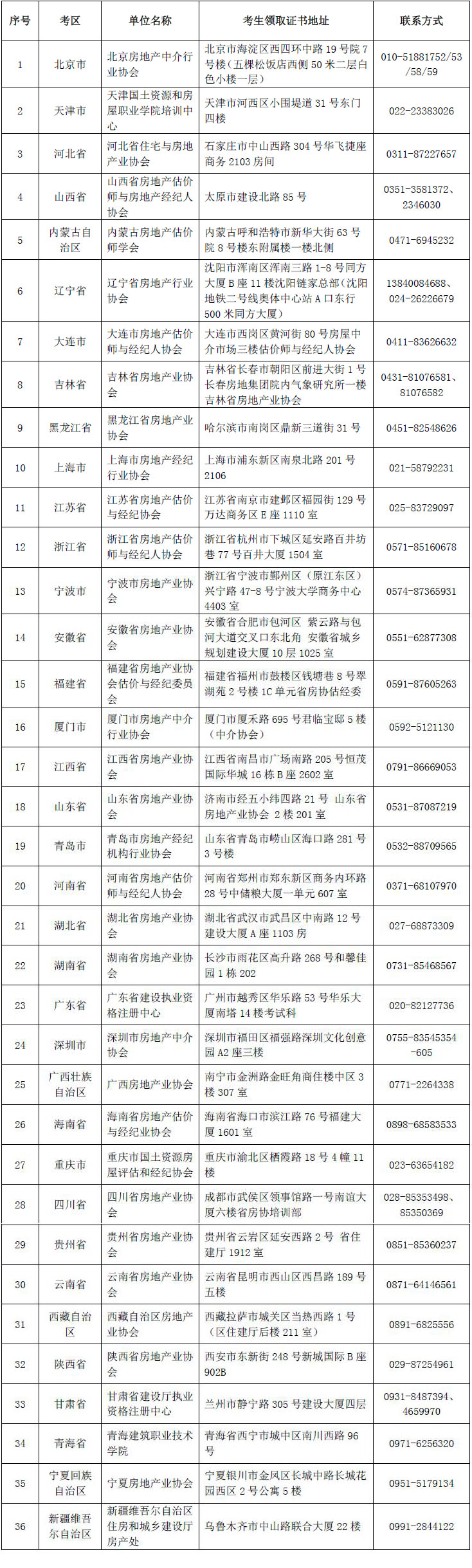 资格证书领取单位名称、地址及联系方式见附表,具体领取时间以各地方考试实施机构安排为准。