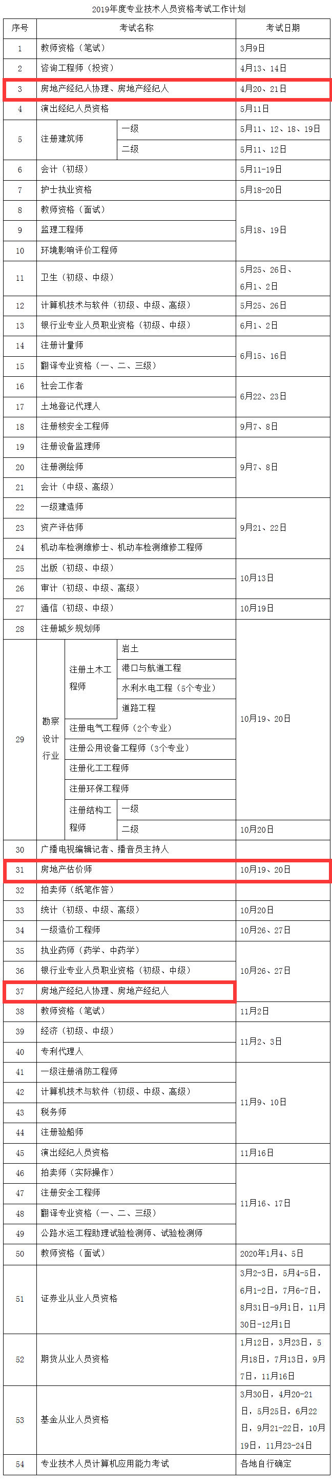 为进一步做好专业技术人员资格考试的规划与管理,经与有关部门和考试管理机构研究,现就2019年度专业技术资格考试计划及有关问题通知如下: