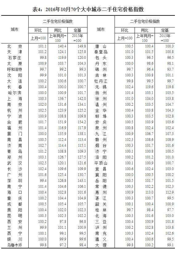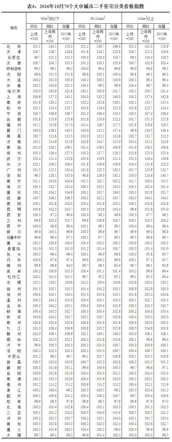 3、调查方法。70个大中城市的新建住宅销售价格、面积、金额等资料直接采用当地房地产管理部门的网签数据。二手住宅销售价格调查为非全面调查,采用重点调查和典型调查相结合的方法,按照房地产经纪机构上报、房地产管理部门提供与调查员实地采价相结合的方式收集基础数据。