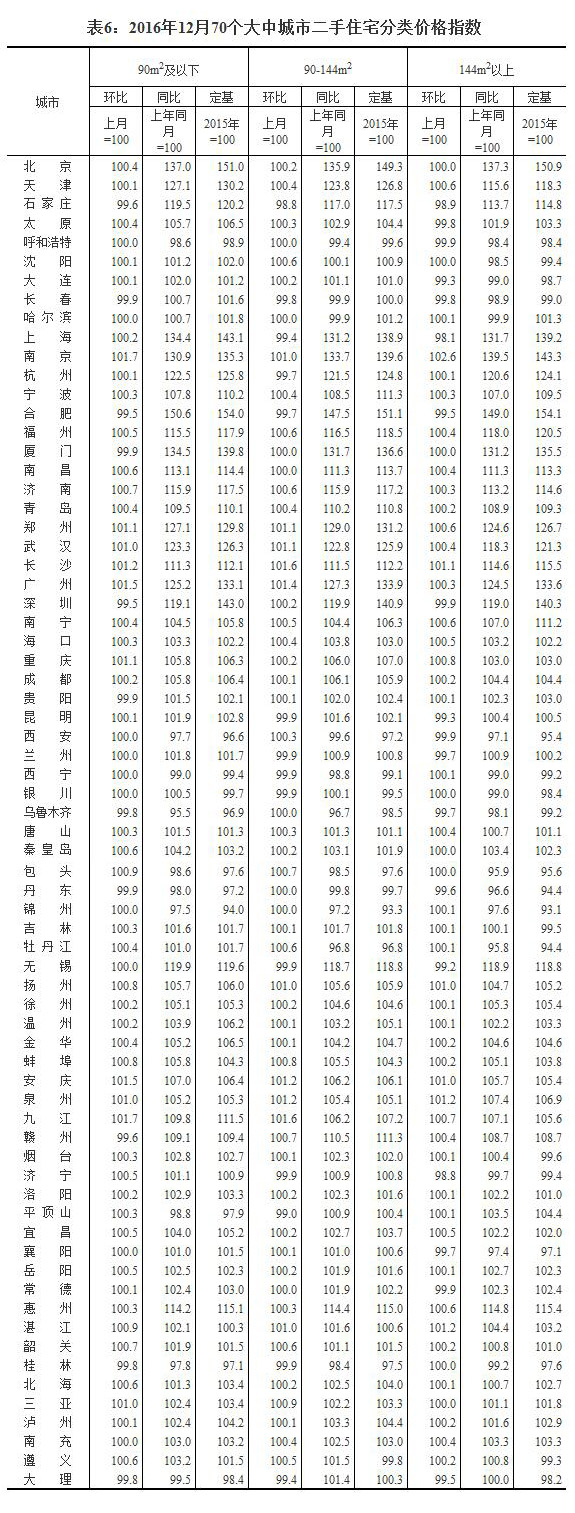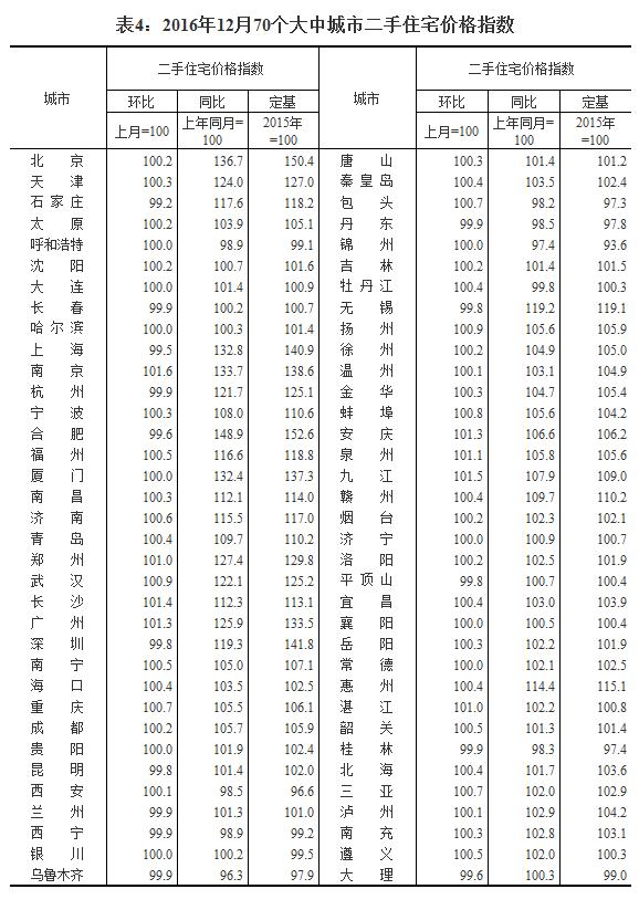 3、调查方法。70个大中城市的新建住宅销售价格、面积、金额等资料直接采用当地房地产管理部门的网签数据。二手住宅销售价格调查为非全面调查,采用重点调查和典型调查相结合的方法,按照房地产经纪机构上报、房地产管理部门提供与调查员实地采价相结合的方式收集基础数据。