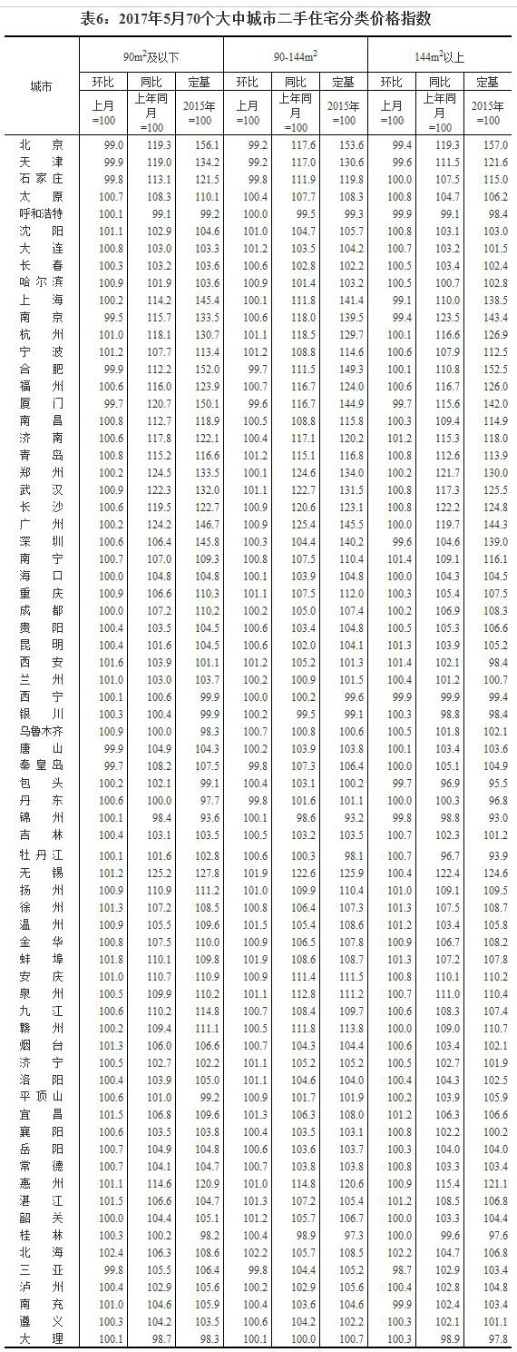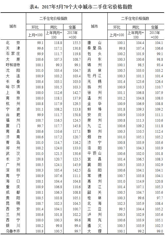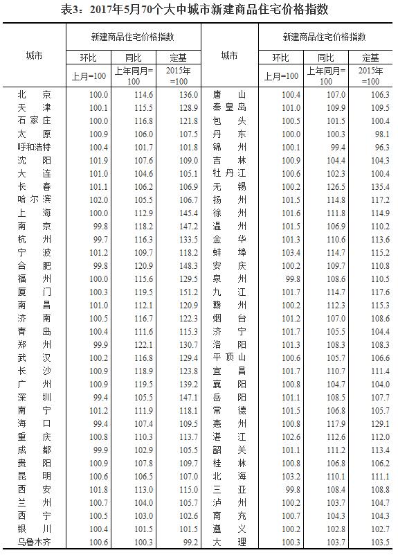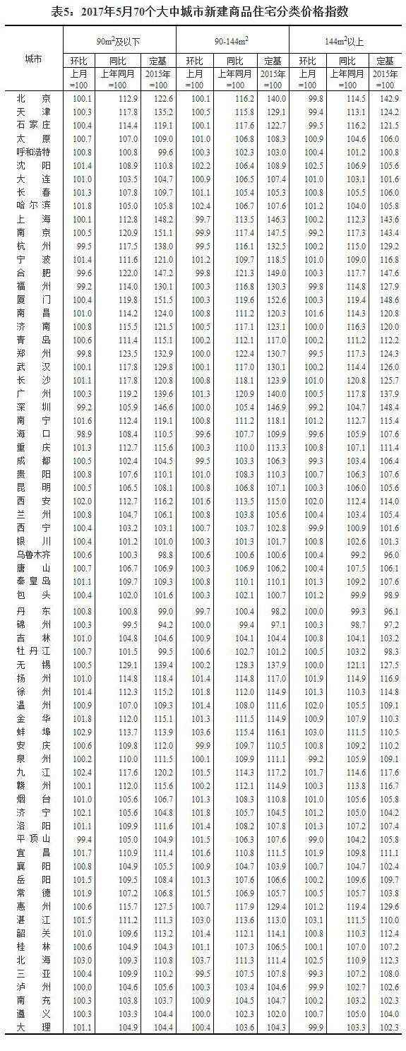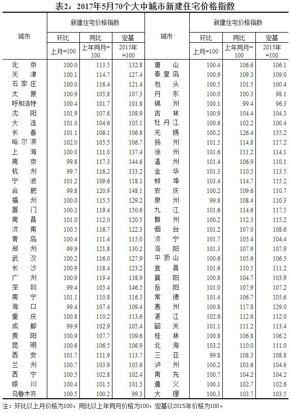 2017年5月份70个大中城市住宅销售价格变动情况