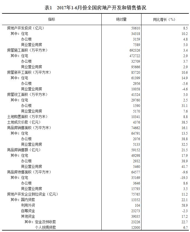 1-6月份,房地产开发企业土地购置面积10341万平方米,同比增长8.8%,增速比1-5月份提高3.5个百分点;土地成交价款4376亿元,增长38.5%,增速提高6.2个百分点。