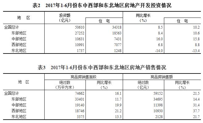 1-6月份,东部地区房地产开发投资27252亿元,同比增长8.4%,增速与1-5月份持平;中部地区投资10631亿元,增长16.0%,增速回落0.9个百分点;西部地区投资10991亿元,增长6.8%,增速回落0.2个百分点;东北地区投资1737亿元,下降14.0%,降幅收窄2.1个百分点。