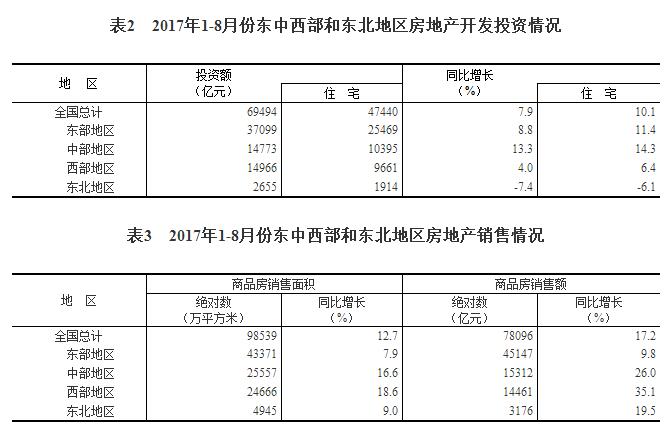 1-8月份,东部地区房地产开发投资37099亿元,同比增长8.8%,增速比1-7月份提高0.3个百分点;中部地区投资14773亿元,增长13.3%,增速回落0.5个百分点;西部地区投资14966亿元,增长4.0%,增速回落1.1个百分点;东北地区投资2655亿元,下降7.4%,降幅收窄3.9个百分点。