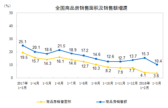 3月末,商品房待售面积57329万平方米,比2月末减少1138万平方米。其中,住宅待售面积减少954万平方米,办公楼待售面积增加43万平方米,商业营业用房待售面积减少203万平方米。