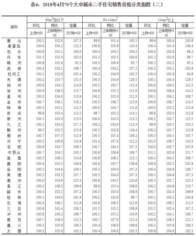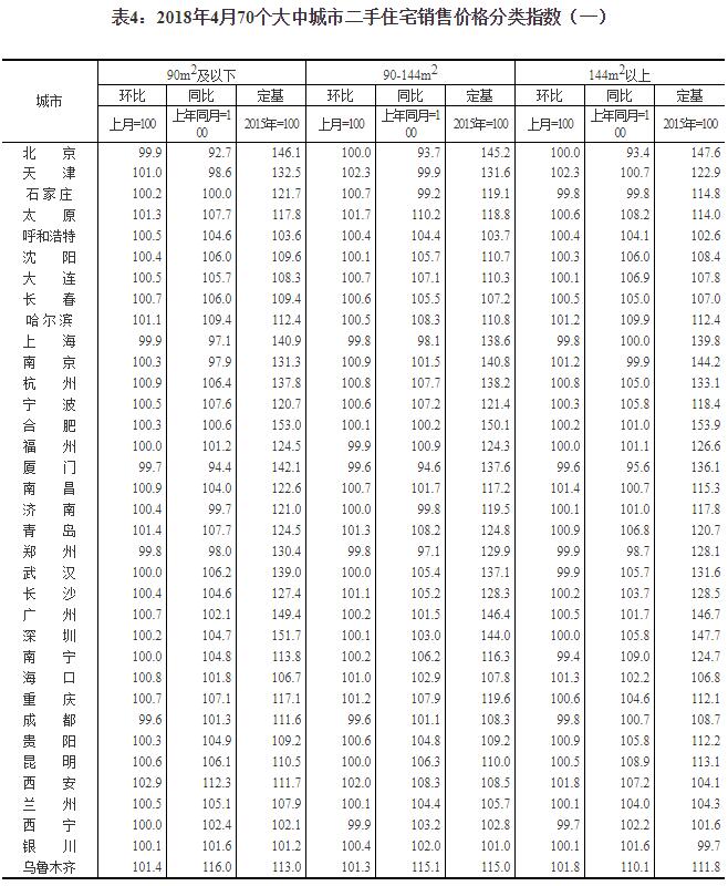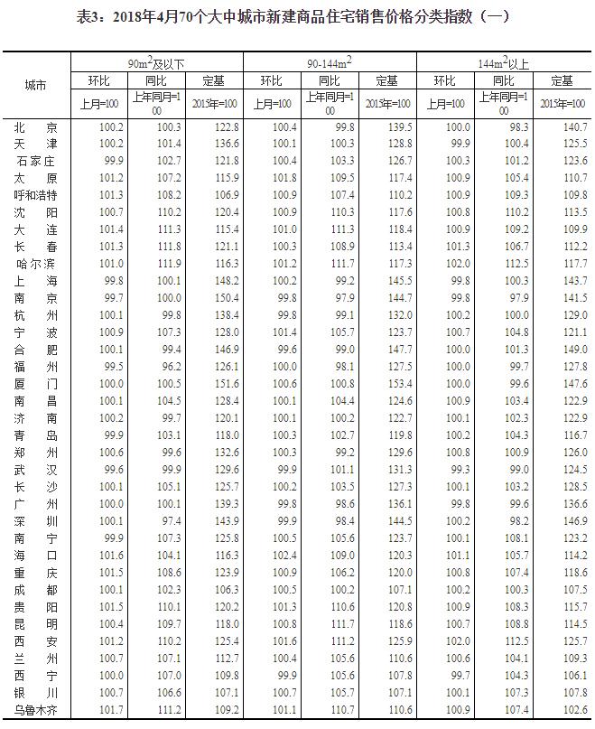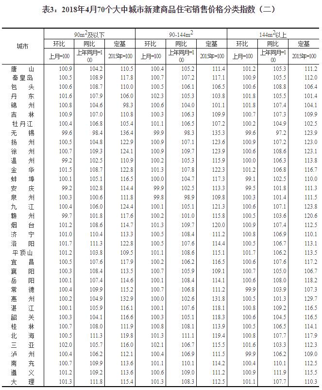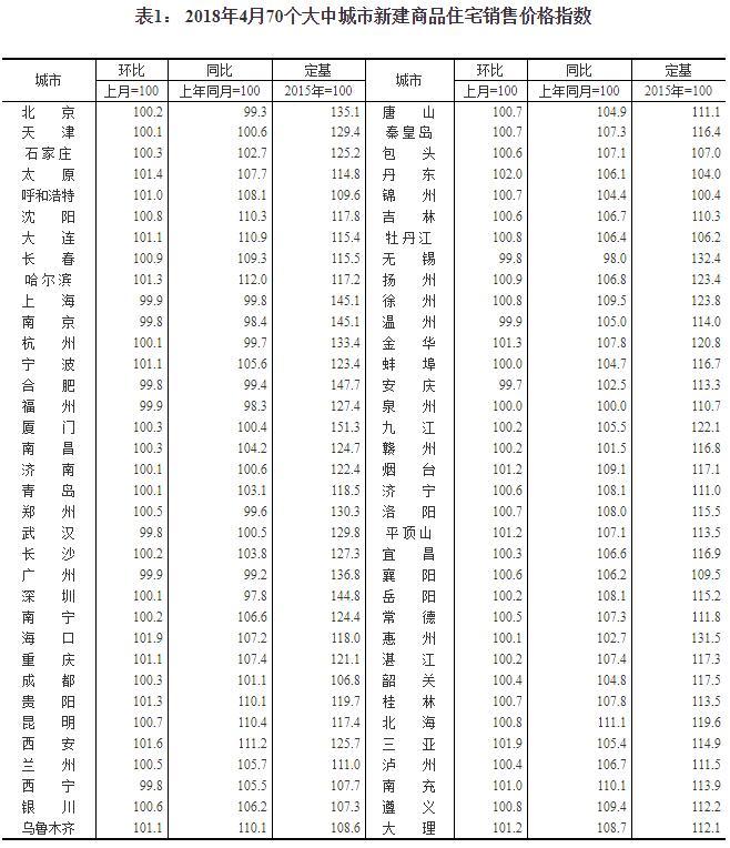 2018年4月份70个大中城市商品住宅销售价格变动情况