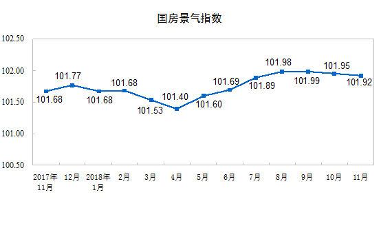 11月份,房地产开发景气指数(简称“国房景气指数”)为101.92,比10月份回落0.03点。