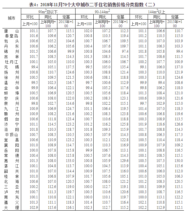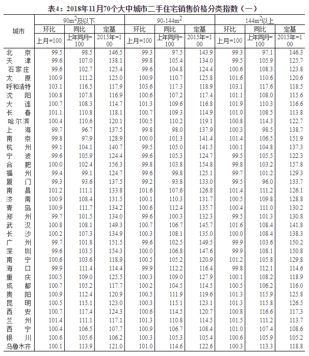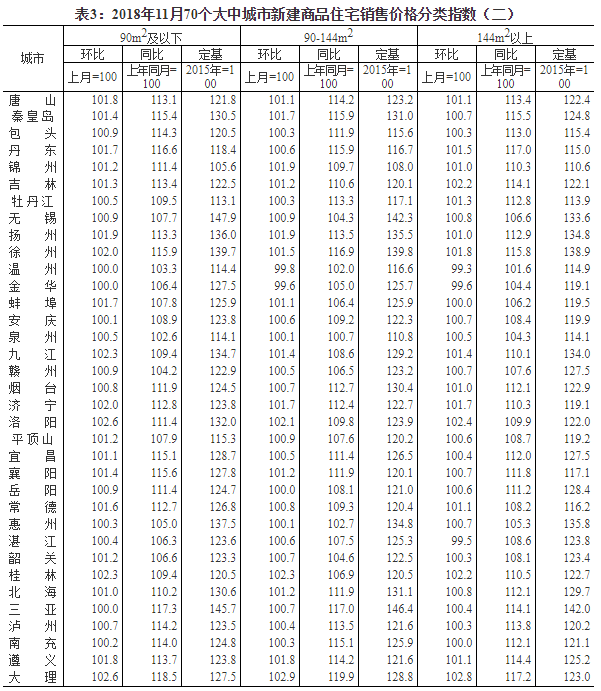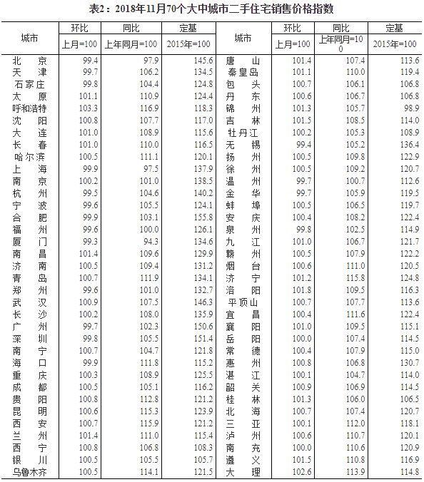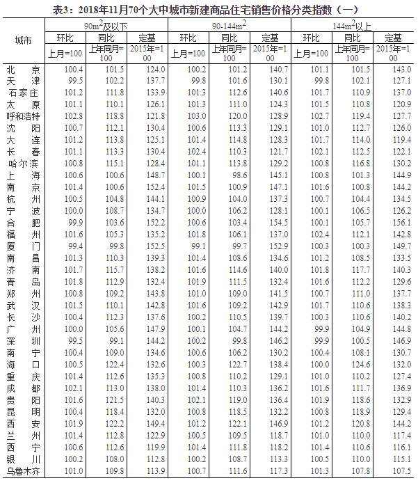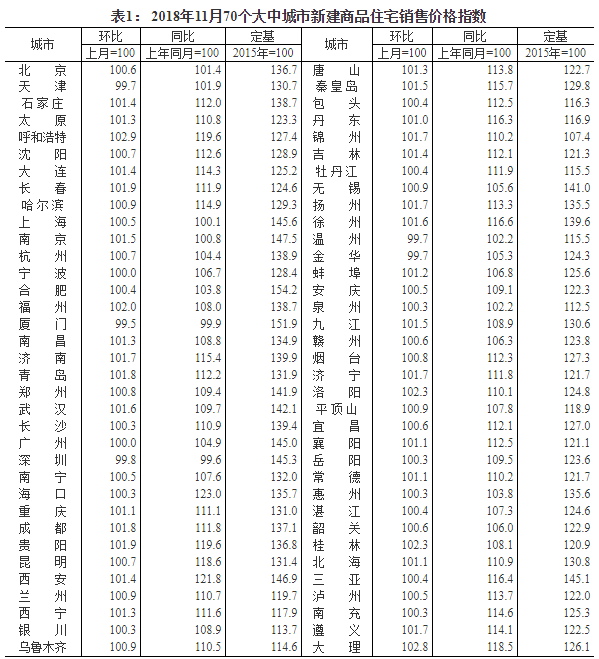 2018年11月份70个大中城市商品住宅销售价格变动情况