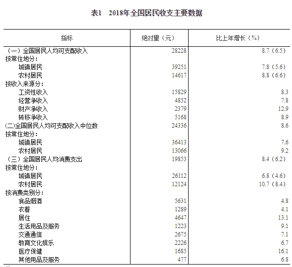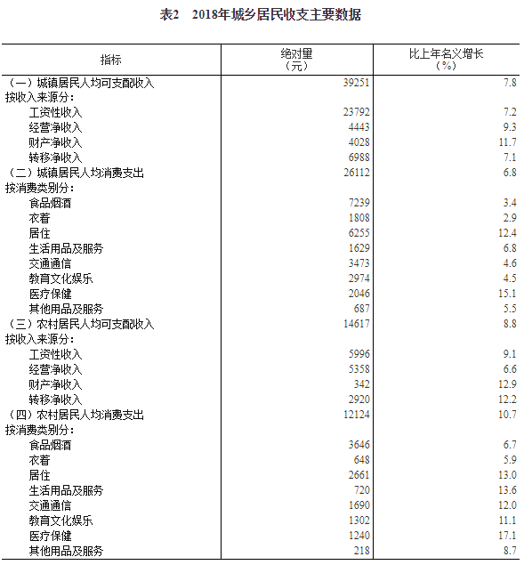 2018年居民收入和消费支出情况