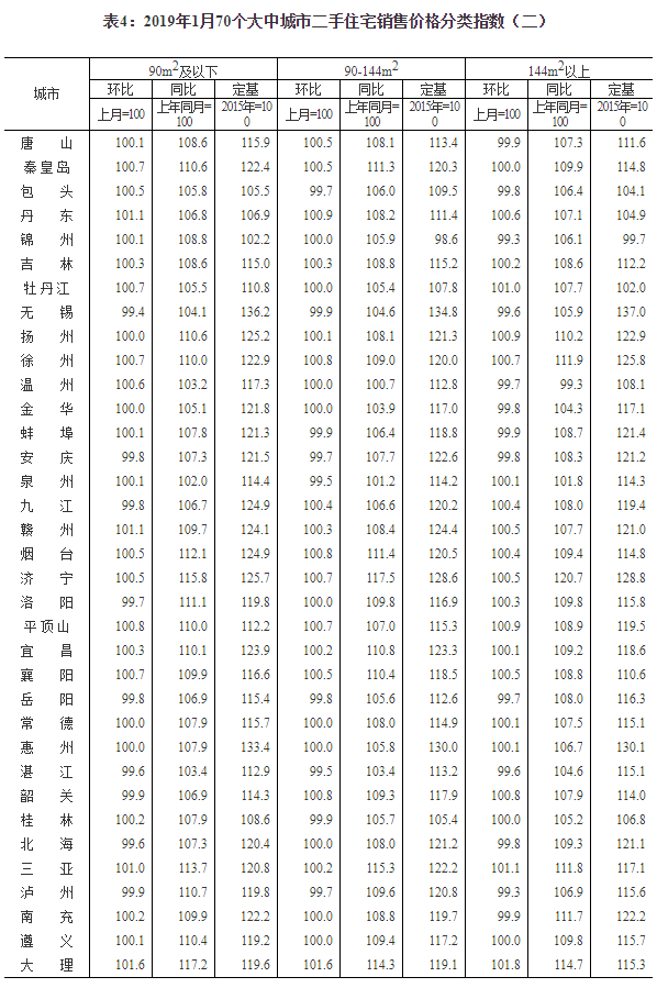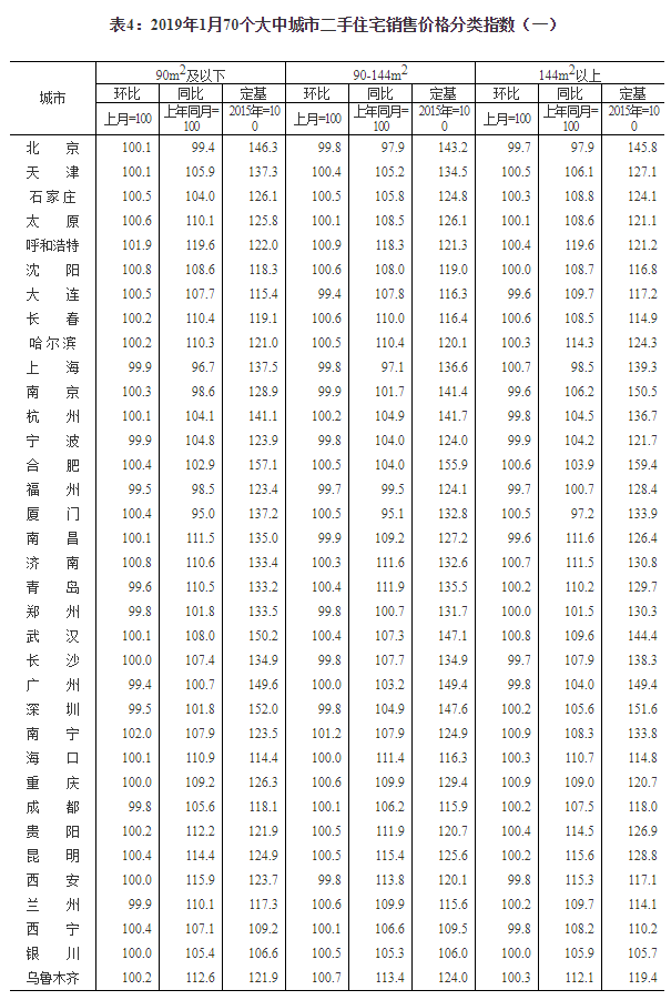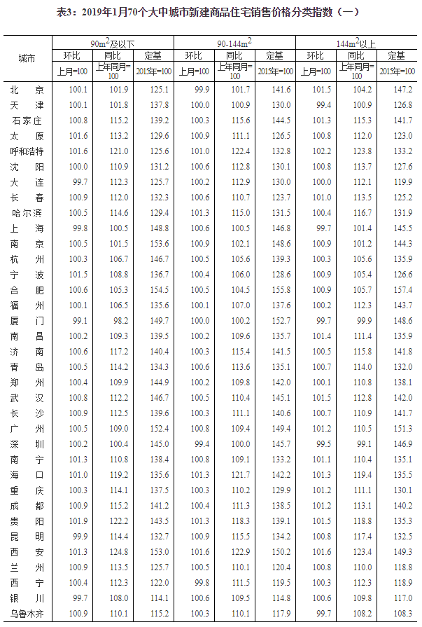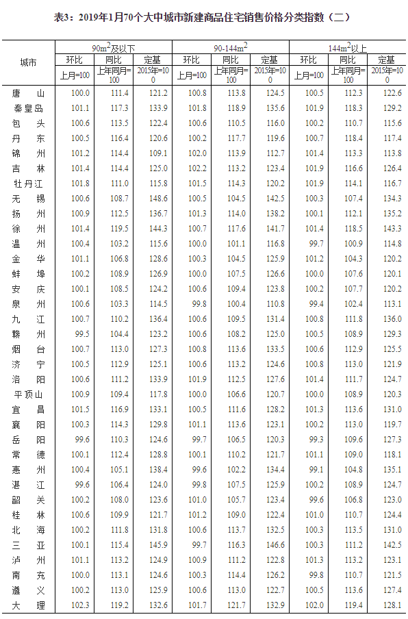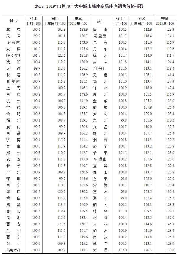 2019年1月份70个大中城市商品住宅销售价格变动情况