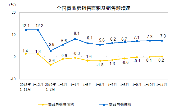 2019年1-11月份全国房地产开发投资和销售情况
