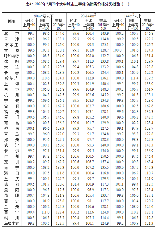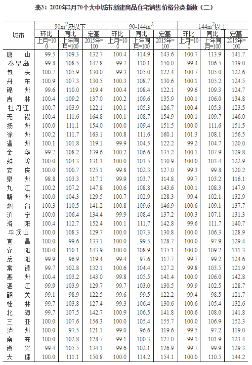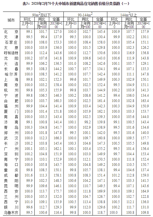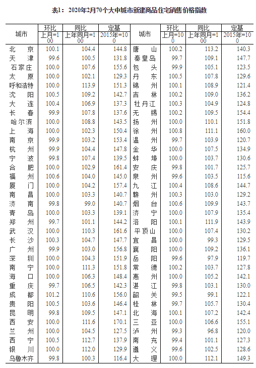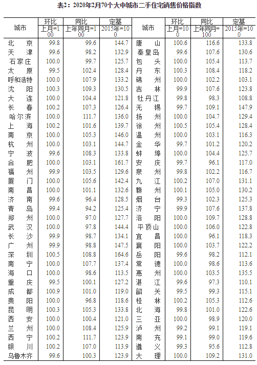 2020年2月份70个大中城市商品住宅销售价格变动情况