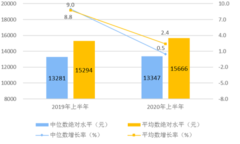 图1 2020年上半年居民人均可支配收入平均数与中位数