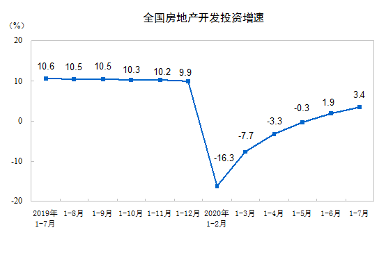 1—7月份,全国房地产开发投资75325亿元,同比增长3.4%,增速比1—6月份提高1.5个百分点。其中,住宅投资55682亿元,增长4.1%,增速提高1.5个百分点。