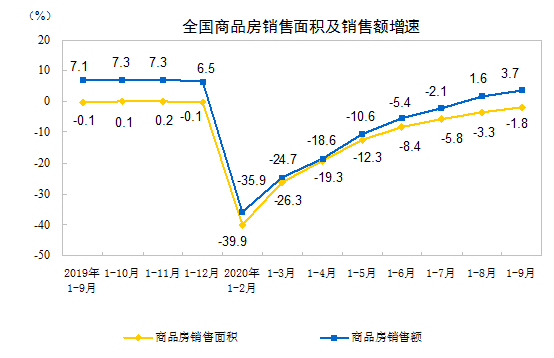 2020年1—9月份全国房地产开发投资和销售情况