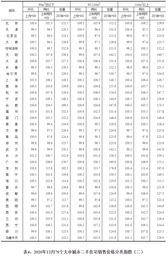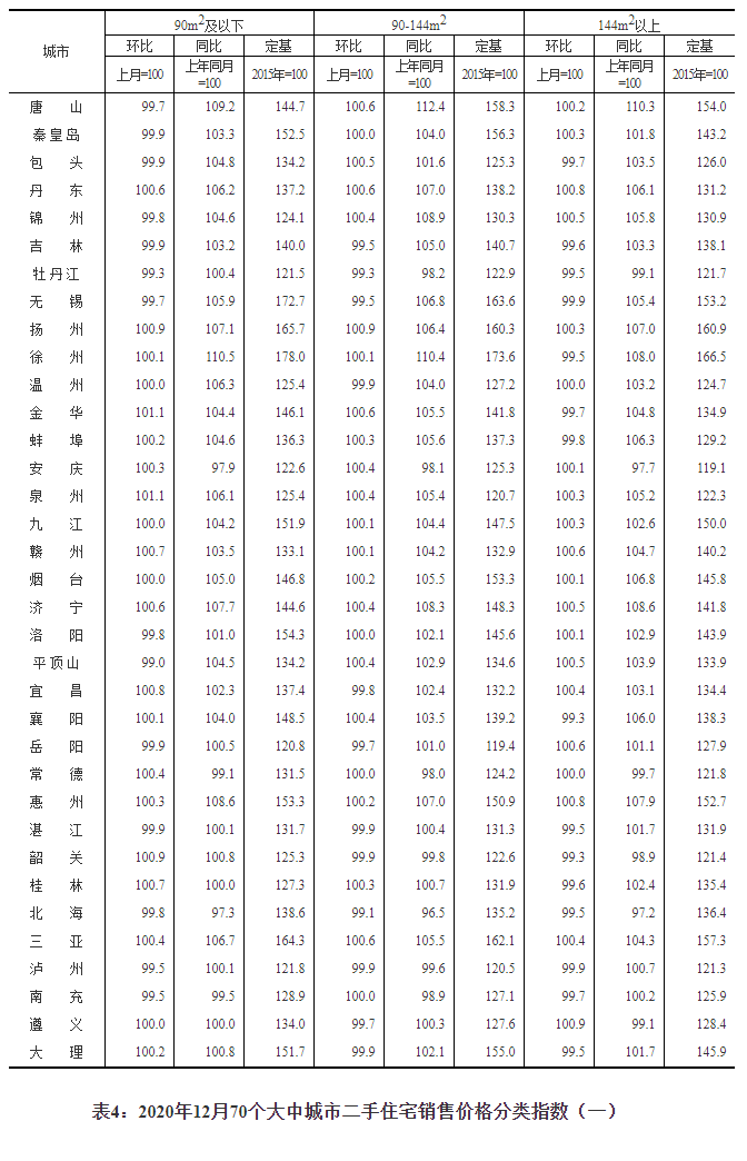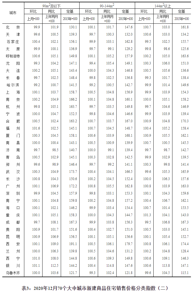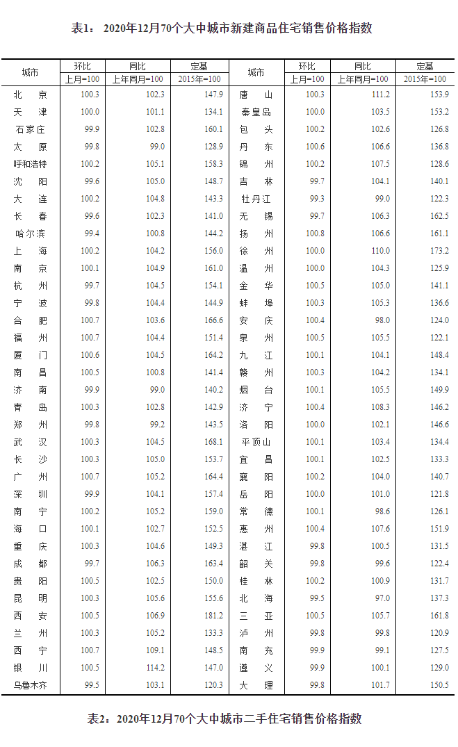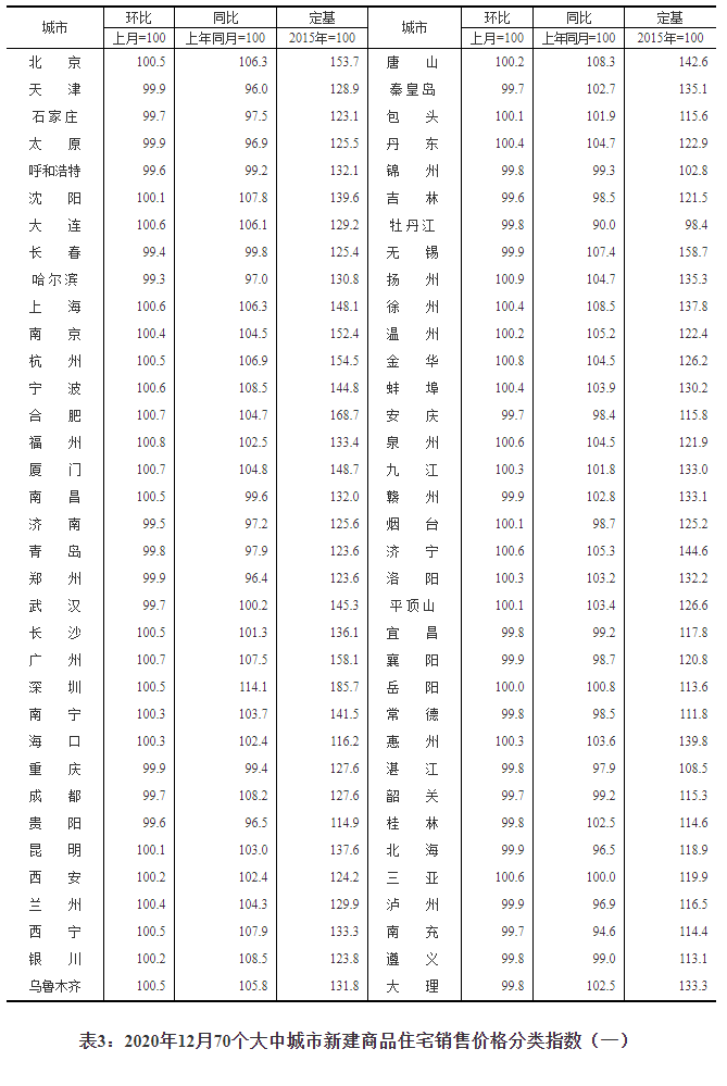 2020年12月份70个大中城市商品住宅销售价格变动情况