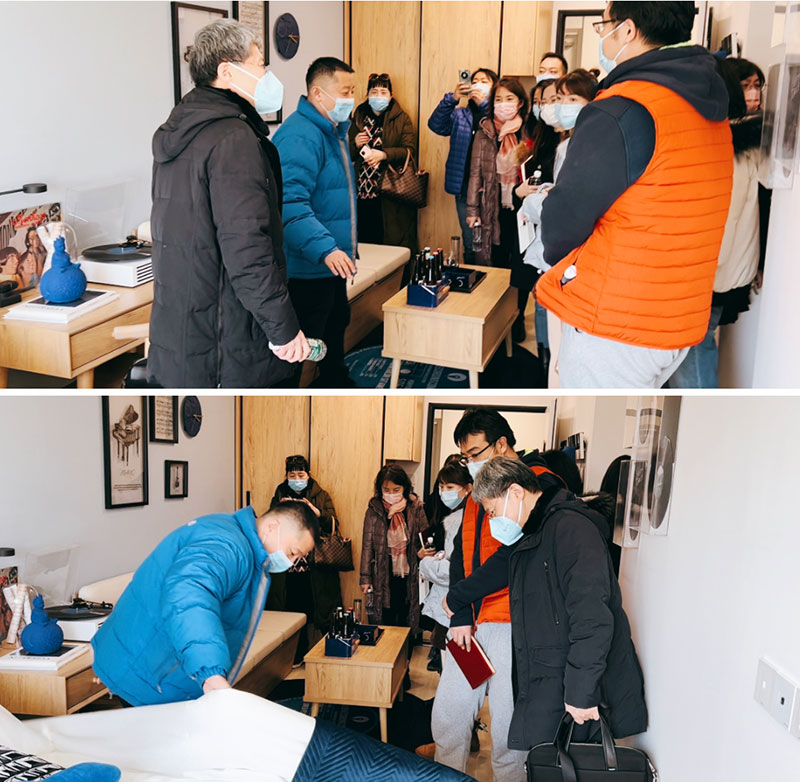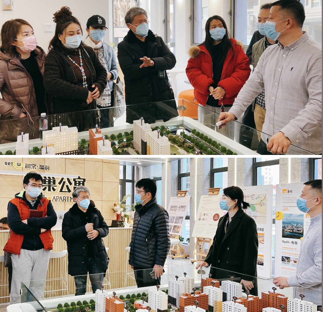 参观人员首先来到项目沙盘区了解社区概况,随后参观了社区广场和样板间,了解社区配套建设、户型设置及房内设施配备等情况,听取了有巢国际公寓社区润棠瀛海项目和花乡葆台华润有巢总部基地项目的运营等情况介绍,并就项目在实施过程中的获得政策支持、遇到的困难和解决方法、运营方式等问题,与项目负责人进行了沟通、互动。