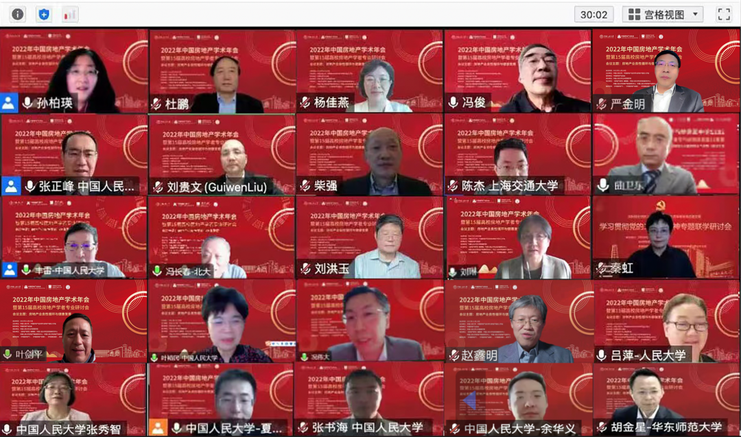 11月19日,由中国房地产估价师与房地产经纪人学会(以下称中房学)、中国人民大学主办,中国人民大学公共管理学院承办的2022年中国房地产学术年会暨第15届高校房地产学者专业研讨会在北京召开。住房和城乡建设部住房公积金监管司杨佳燕司长,中房学会长柴强、副会长兼秘书长赵鑫明,中国人民大学副校长杜鹏教授等出席了会议。