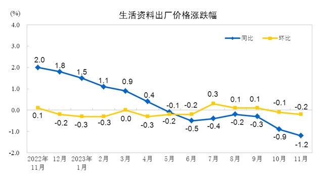 2023年11月工业生产者价格主要数据